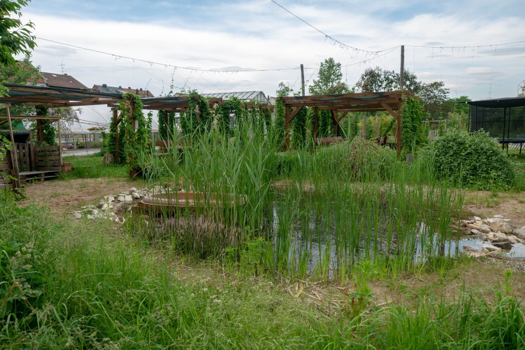 In einer Stadt voller bierbezogener Superlative eine Neugier weckende Ansage. Aber der erste Blick in den Hof lässt keine Zweifel zu: überall sprießt und blüht es in bunten Farben, die von vielen weiteren Graffiti gerahmt werden. Der Weg, der sich weiter unten zwischen Gewächshäusern in einer lauschigen, grünen Laube verliert, zieht unsere Aufmerksamkeit und Neugierde auf sich.